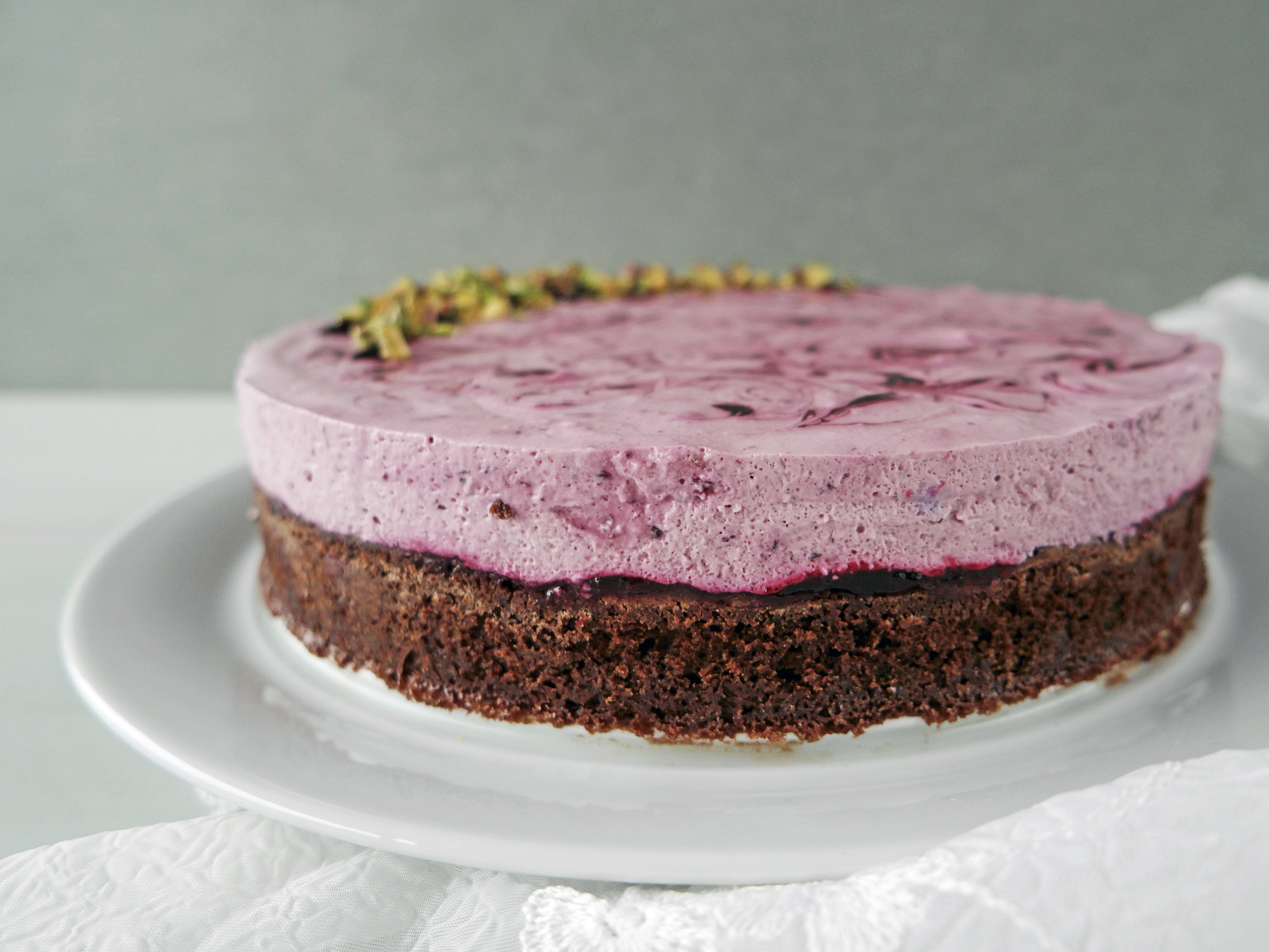 Solbærostekake med browniebunn og pistasjnøtter, 24-26 cm springform